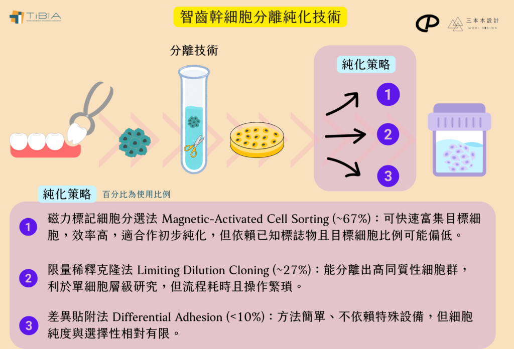 智齒幹細胞的分離與純化技術呈現多樣化: