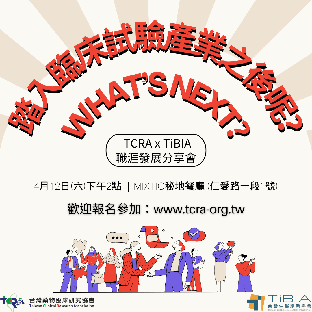 【學會活動】踏入臨床試驗產業之後呢?What’s next?- TCRA x TiBIA 職涯發展分享會